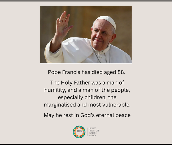 The Jesuit Institute is grateful to God for the twelve years of generous ministry of Pope Francis. Our work has been inspired and stimulated by his example of pastoral outreach. He has invited the Church to welcome and accompany the outsider, the prisoner, the LGBTQIA+ community, people of other faiths
