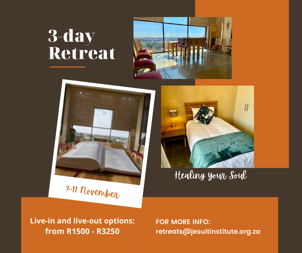 You can live-in at our self-catering retreat centre. The rate for this option is R1800 (discounted to R1650 if you pay before 25 October 2021). You will be accommodated in en-suite rooms that will give you the space and time you need to enter into this time of prayer and reflection. Included in the price is the accommodation, use of the facilities, input, and the printed materials of the retreat.